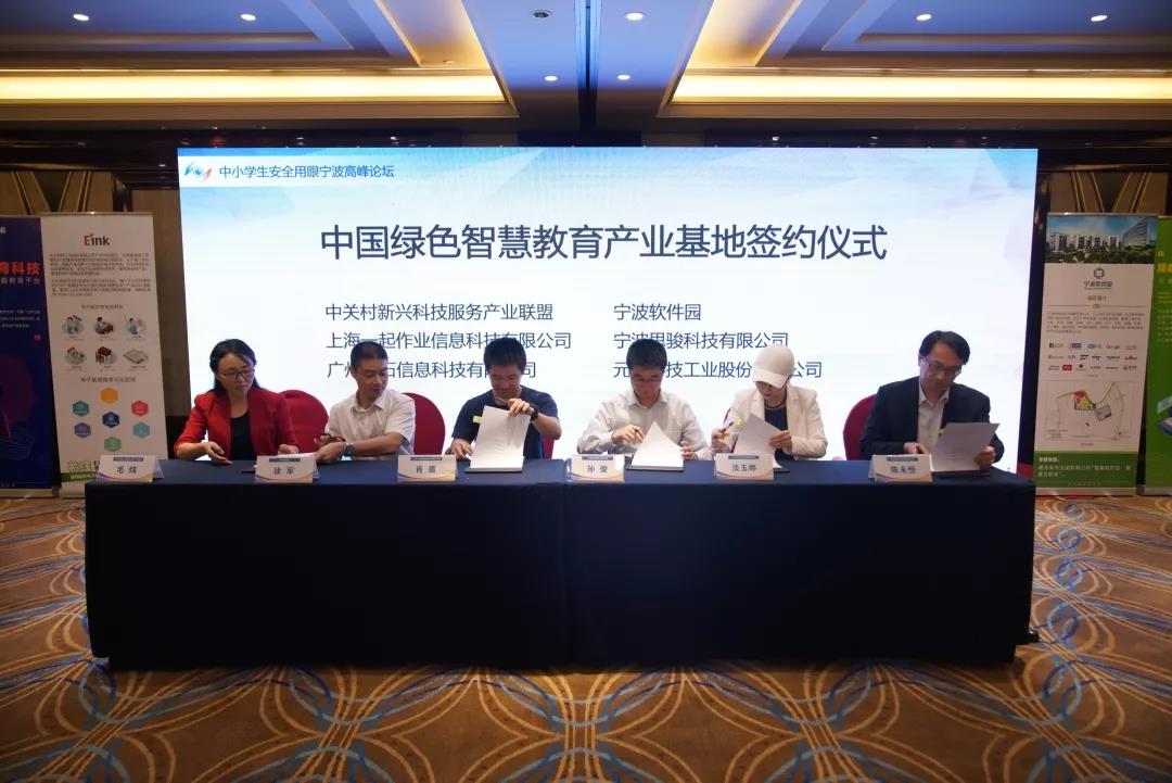 在此次论坛中,我司还联合中关村新兴科技服务产业联盟、一起教育科技、广州文石、元太工业等知名智慧教育、墨水屏生产企业,同宁波软件园共同签订了中国首个绿色智慧教育产业基地建设协议,计划立足宁波,将绿色智慧教育产品和解决方案推向全国。