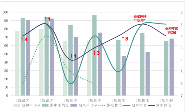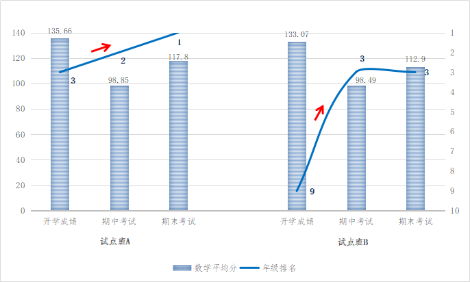 (三)宁波市某高中A的两个高一班级自2019年10月中旬开始使用作业家(应用5门科目),所有保持正常使用量的班级在2019年秋季学期期末考试中,无一例外均有不同幅度的名次提升。