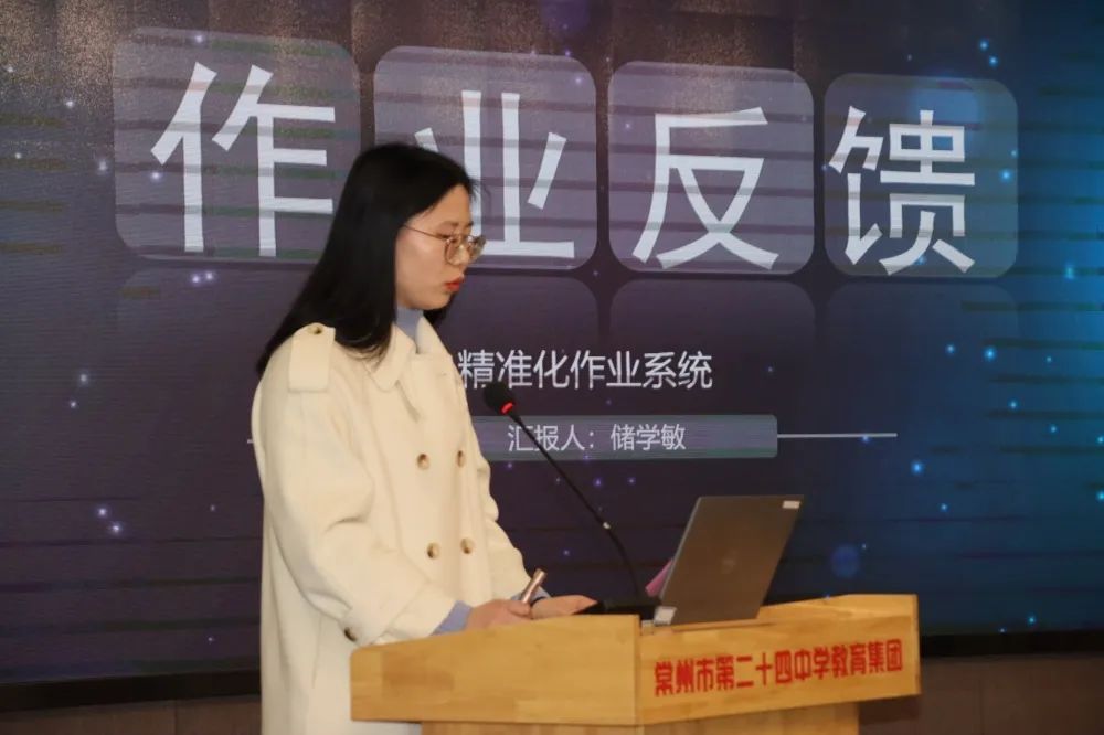 “双减”政策下作业管理的研究方向和落实点,不只是在“量”上做简单的“减法”,更要在“质”上求“变化”。在随后进行的汇报交流会上,常州市虹景中学李承送校长作题为《信息技术“助力课堂变革 助推‘双减’落地”》的主题报告,向与会嘉宾介绍了学校精准化作业测评项目实施情况,从美丽虹景扬帆起航、凝心聚力项目落实、初见成效坚定方向、困难挑战征途漫漫、鼓足干劲开创未来五个方面做了分享和交流。李校长表示:“我们要做实作业负担‘减法’,做足作业效率‘加法’,积极探索一条符合学校实际的作业改革之路。”