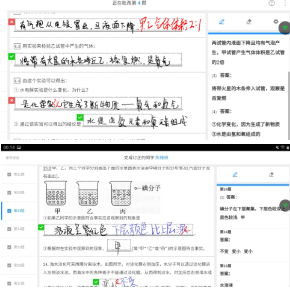 七年级的数、英、科老师则和平时一样通过作业系统对学生作业全批全改。每次批改后,老师们通过系统查看班级作业正确率,了解每位学生的学习情况,通过系统语音功能讲解重难点,再对学生的订正作业进行二次批改、三次批改,甚至五次六次批改。