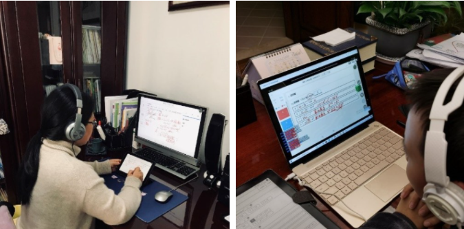 为了解决学生学习过程中产生的疑问,教务处在每周课表中特意安排了答疑时段,老师们则在这段时间里各显神通:有的老师通过钉钉群直播采用电脑屏幕分享模式,开展PPT授课或Word作业讲解,同时手机关注学生,实时互动;有的老师直播答疑,以打字或者连麦方式进行全体回答和个别回答相结合,学生提前做好连麦申请,以增加课堂效率;有的老师利用钉钉视频会议模式,指定部分学生背诵课文;七年级教师则在钉钉直播时,采用作业系统直接投屏电脑方式,实时书写讲解,与平时教室投屏效果一致。