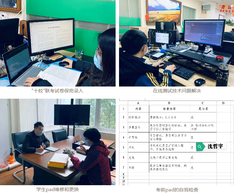 各班级提前一周了解每位学生的pad端的异常使用情况并进行针对性修复;各学科组教师提前一天对平台的使用进行了测试,确保顺利掌握在线测试平台的使用方法。针对不同学科考试时的特殊性,教务处还启动了考试应急预案,确保了测试的顺利进行。