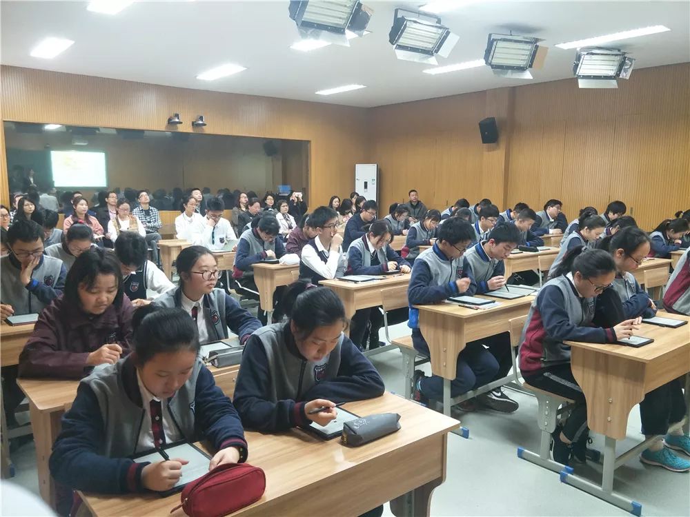 智慧课堂的实地展演是此次活动的亮点之一。宁波三中作为全市首个绿色智慧教育示范基地单位,演示了“作业家”在日常教学场景中的完全常态化。