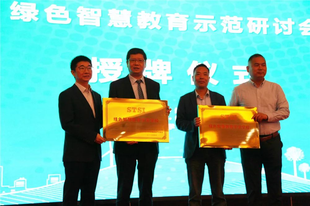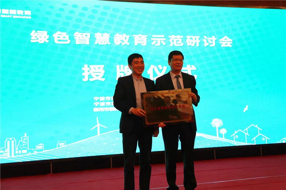 随后进行的是激动人心的授牌仪式,宁波市教育局党委委员、巡视员傅雪波先生为宁波市第三中学授“宁波市绿色智慧教育示范基地”荣誉称号。教育部人工智能咨询专家教授孙俊先生、作业家首席运营官任红宝先生为宁波市第三中学、模环初级中学授“全国绿色教育示范学校”称号。在场师生共同见证了这一欢欣鼓舞的时刻,掌声雷动。